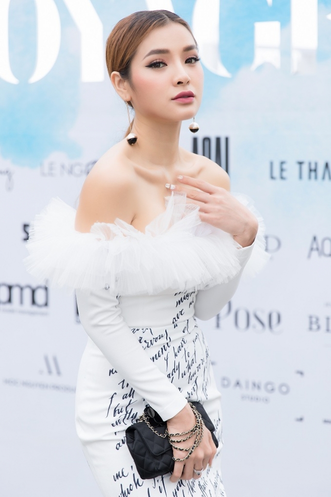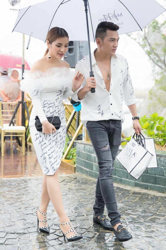 Tuy trời mưa liên tục nhưng Phương Trinh Jolie cùng dàn khách mời vẫn ở đến cuối buổi để chiêm ngưỡng những thiết kế kỳ công, đẹp mắt mà Lê Ngọc Lâm cũng như các nhà thiết kế khác mang lại. Phương Trinh Jolie diện chiếc váy ôm dáng với phần cổ được cách điệu duyên dáng. Nữ diễn viên - ca sĩ tự tin khoe vai trần nõn nà với xương quai xanh quyến rũ. Phương Trinh Jolie là một trong những người đẹp có vóc dáng chuẩn bậc nhất showbiz Việt. Phương Trinh Jolie cho biết, nhờ tập gym và yoga thường xuyên, cô mới duy trì được đường nét sexy, căng đầy cho cơ thể mình.